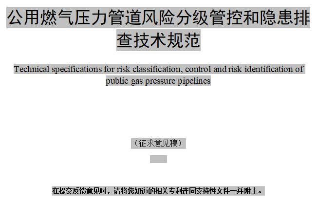 关于《公用燃气压力管道风险分级管控和隐患排查技术规范》公示征求意见的通知