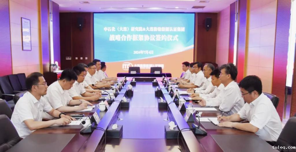 在与会领导的共同见证下,大检集团党委委员、副总经理王国华与中石化大连院党委副书记、纪委书记、工会主席、监事会主席吴炳乾代表双方签署战略合作框架协议。